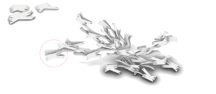 We used the Fox plug-in in laser cutting to see how one 2D shape can be aggregated together to generate a complicated 3D structure. The illustration below is an inspiration that guided us through the design process.
