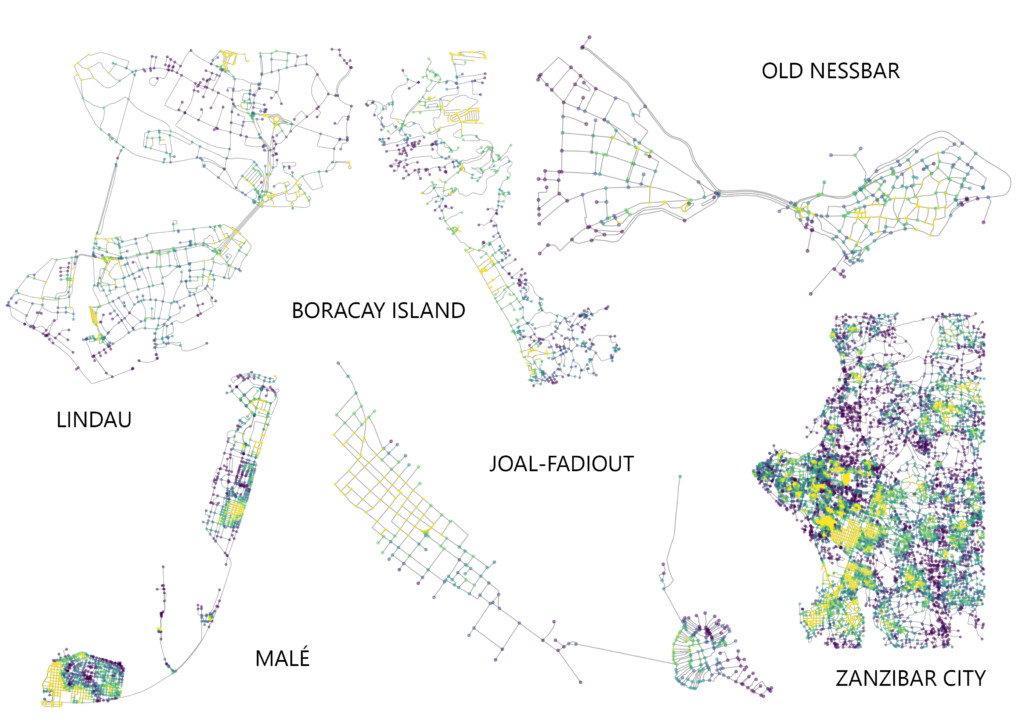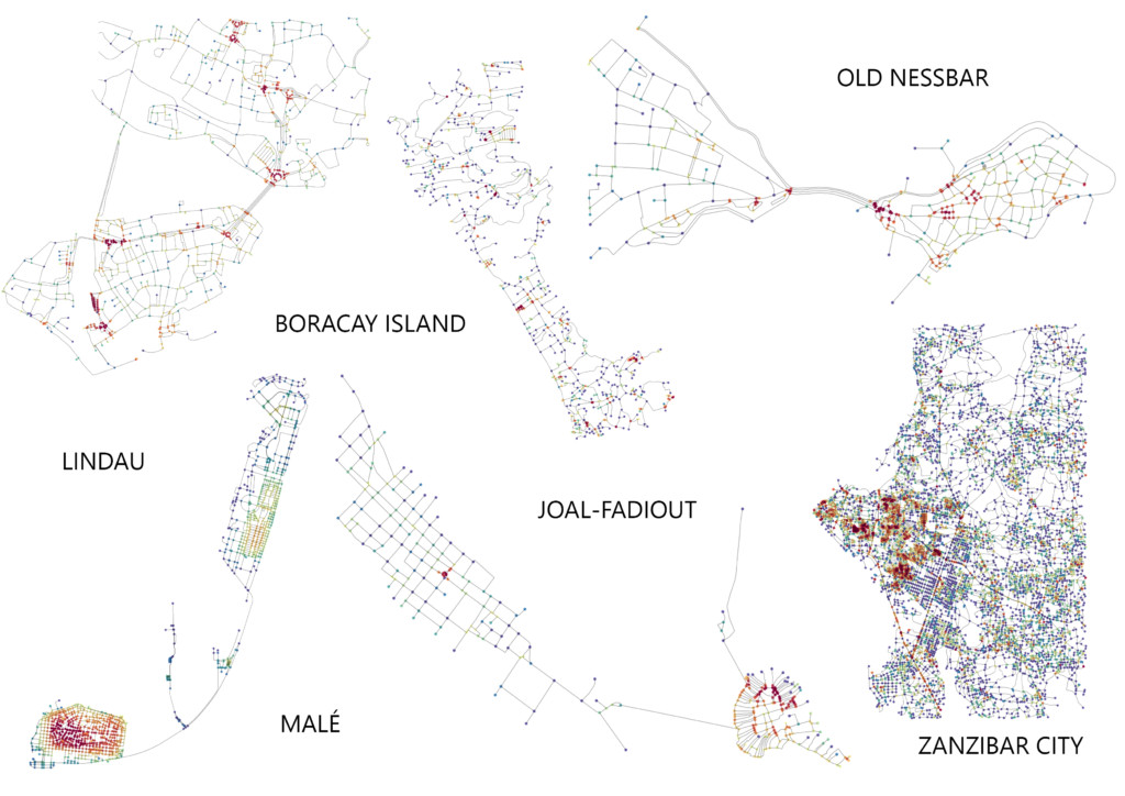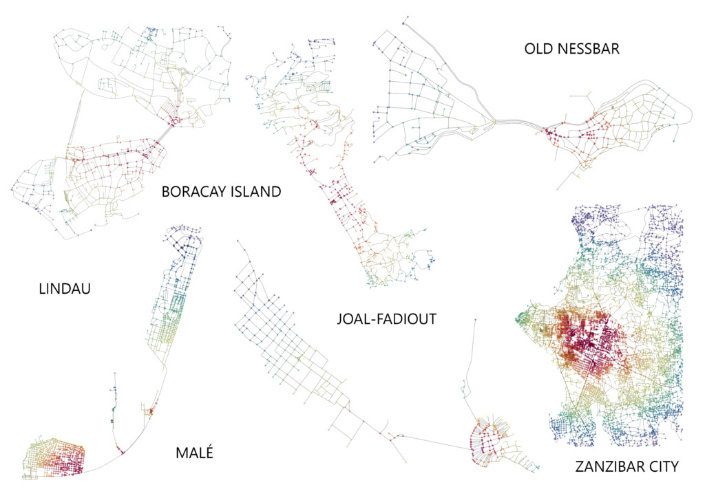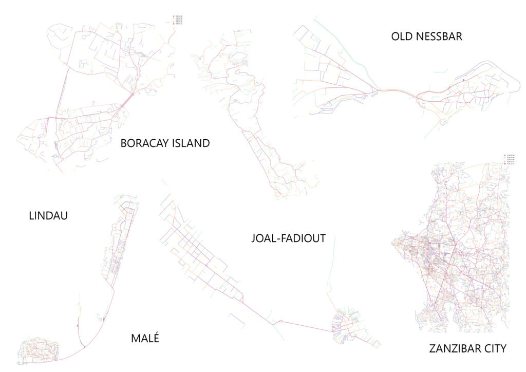 For this project we wanted to understand the urban networks of towns that exist on islands and their relationship to the coast . We were curious about the effect of the confined landmass would have on the network and would network connect to important facilities such as ports. We studied 6 towns for their meshedness, closeness , betweeness and orientation. the towns themselves were selected based on how close where they to the shore and their dominating economy.