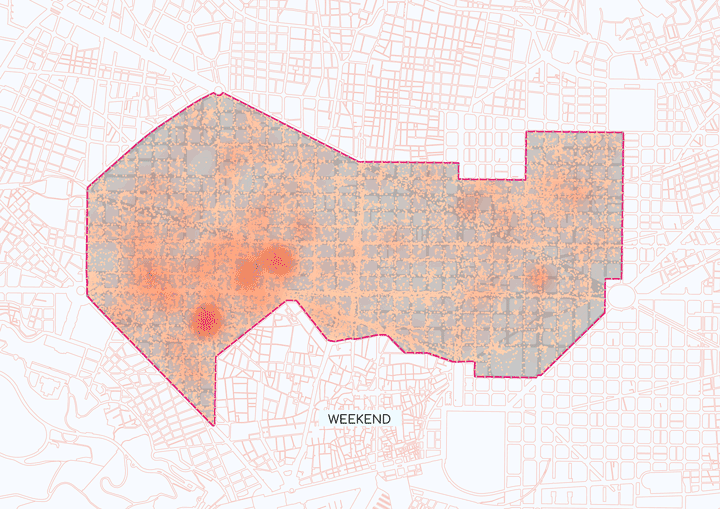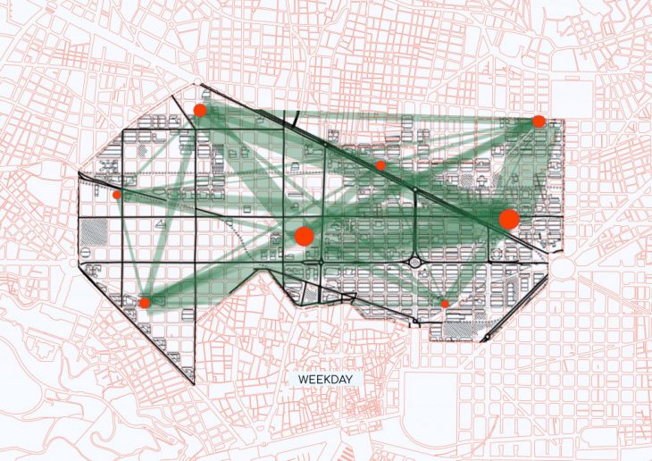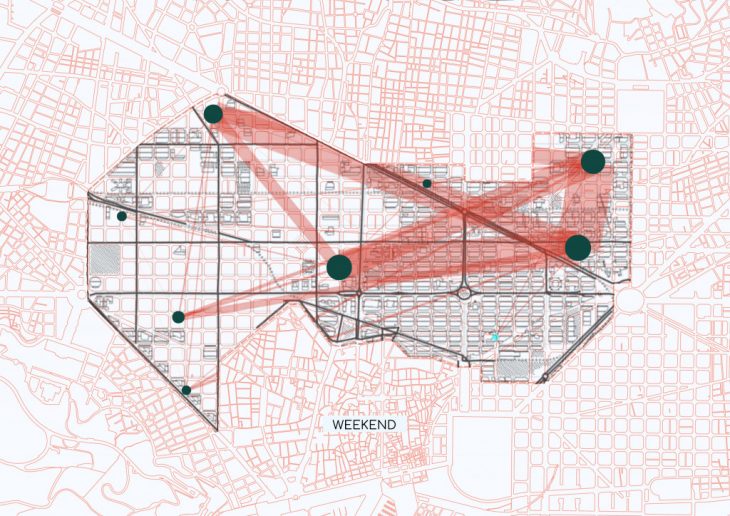 This analysis is part of a larger project ‘KNOW MORE TIME’, understanding the relationship between space and time in the city of Barcelona. The analysis aims to understand the flow of people through different scales of the city to identify the dense neighborhoods and underutilized spaces.