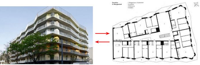Image 25: Shading basic shape with balconies (left) – Shading jagged shape with balconies (right)