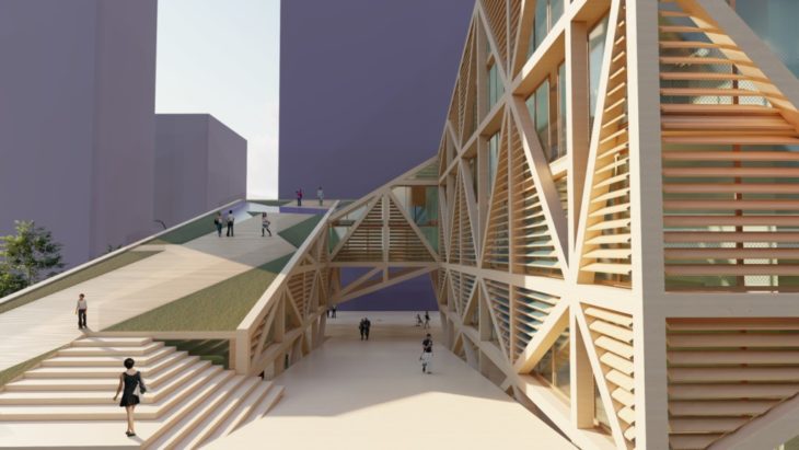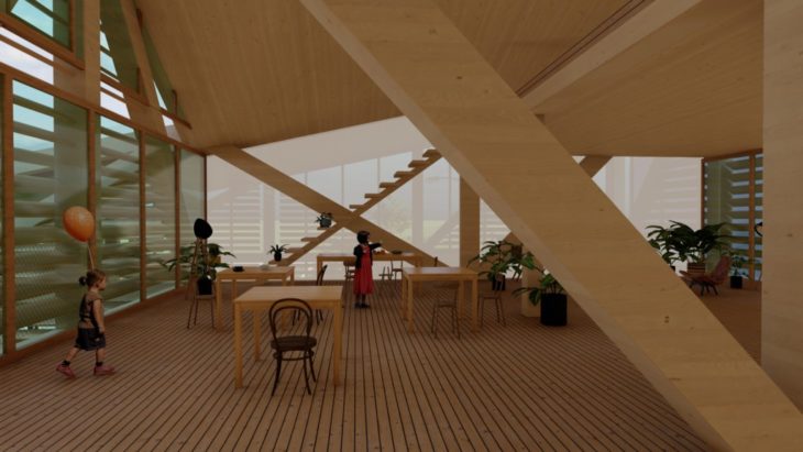 A move towards timber and large structural timber elements permits a more ecological approach to building construction. With the use of CLT panels, pladur insulation instead of concrete for flooring and glulam columns and beams for the structure, the ‘wrapping’ project showcases what the future of ecological construction should look like.