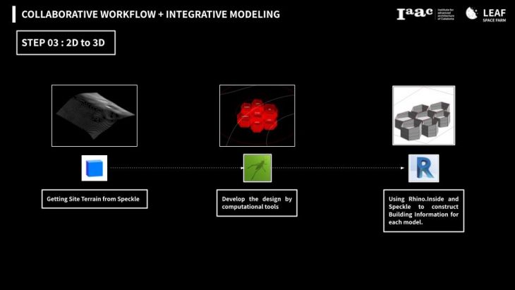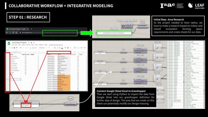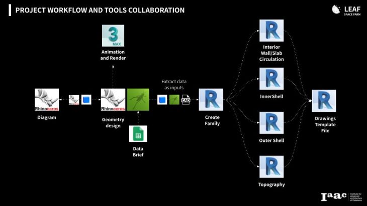 This process of using Revit is part of BIM Smart Construction module of MaCad program where the workflow of transferring data between Rhino to Revit or Revit to Rhino that have majorly involved with Rhino.Inside Revit. For the tools, the design was modelled by Grasshopper to simulate and optimize the geometry, while the second process of transferring and modeling geometry with data were involved with Rhino.Inside component in grasshopper. In this project, LEAF Luna Enhancement and Agricultural Farming, the idea of create BIM workflow is essentially needed as the project is aiming to be built on the moon so all the elements need to have data and location specifically indicated, so Revit became our main tools for adding parameters and help visualizing data from different aspects. Moreover, by using Rhino.Inside helping us to parametrically modify object families, levels, and other elemental ID related such as materials and object types.