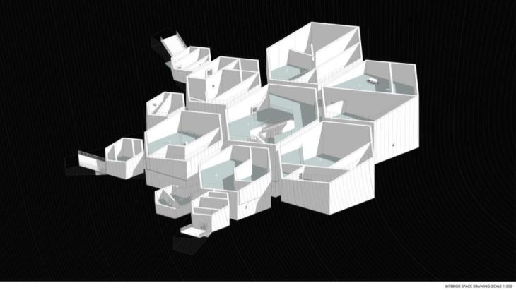 - For interior elements, once the building was finalize from positioning and simulation, the geometry was brought from Grasshopper to Rhino.Inside by using outline and terrains. In this case, we could extract the elements such as level using z-value of the floor, wall using outline of the plans, floor using outline of the floor. In this initial 3 steps we could have final based geometry to further develop into interior design and room divisions in Revit.