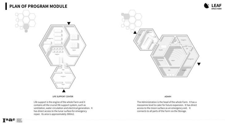 As a research of food quantity to be produced per day, the project program areas were referenced by indoor sustainable farm on Earth with the adjusting space suitably to the moon condition.