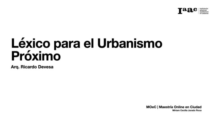 Léxico para el Urbanismo Próximo es un proyecto del IAAC, Instituto de Arquitectura Avanzada de Cataluña, desarrollado en la Maestría Online en Ciudades en 2021/2022 por: Miriam Cecilia Jurado Roca, y profesorado: Ricardo Devesa