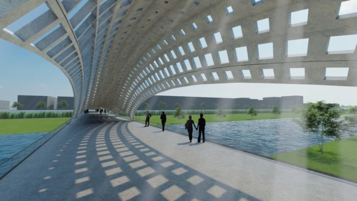 Lleida’s Pedestrian Sleeve is a cover that shades the bridge over the El Segre river in a sleeve-like manner with the aspiration of allowing measured levels of photo-rays, heating, cooling, air ventilation, and spatial quality with considerations towards climatic conditions that the El Segre river are characterized by.
