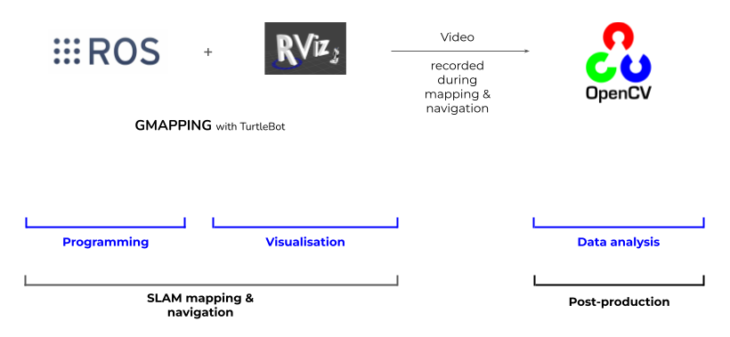 To detect the colors, the OpenCV library is used as a postprocess of the captured videos. This is done in python where certain bright color ranges are recognised by the code and being masked. From these masks a box is created around the contours. Here is a simplified explanation of the code: