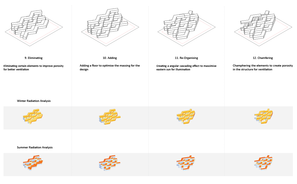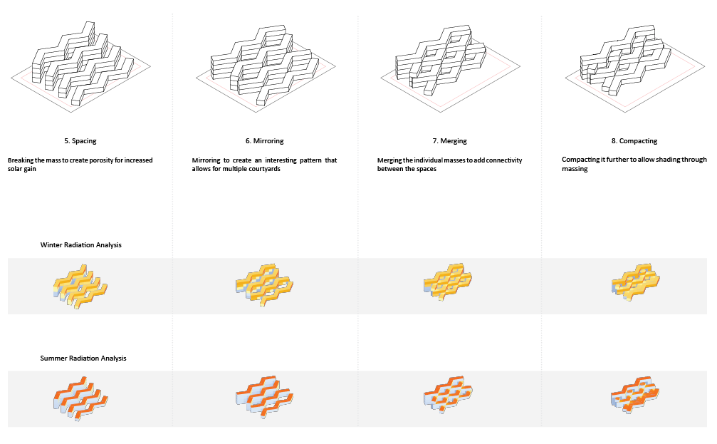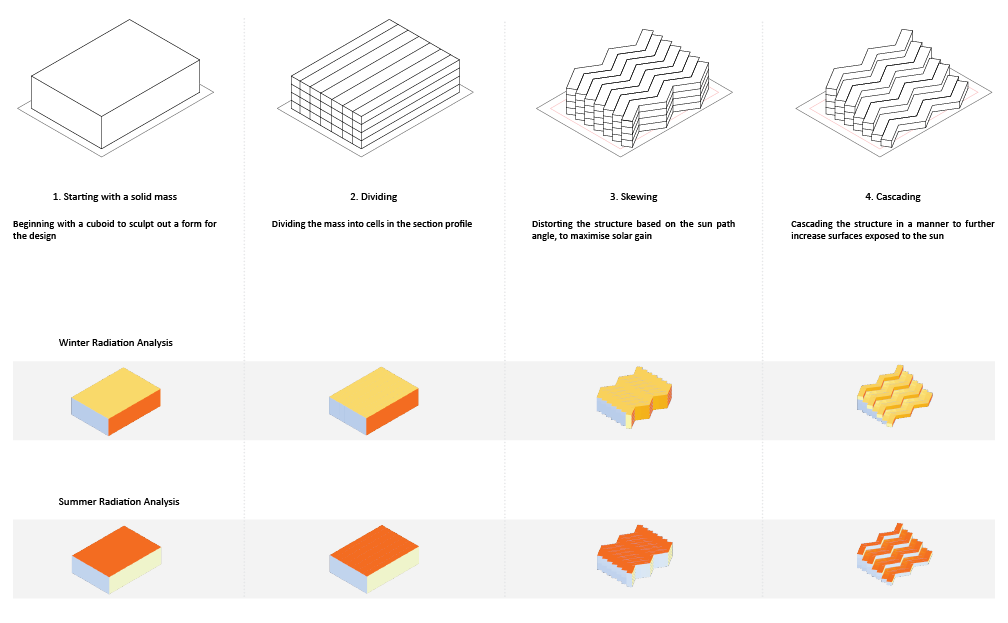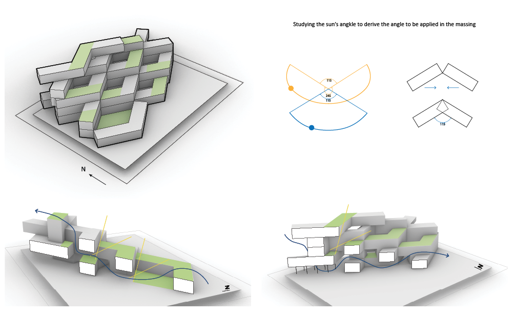 The angle used in the massing is derived from the angle of the sun during the winter season