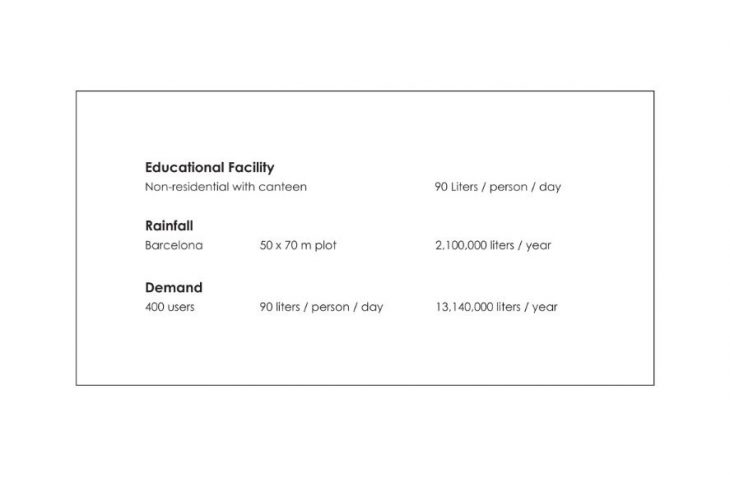 To begin with, we calculated based on the number of users the total water demand for the facility.