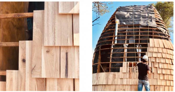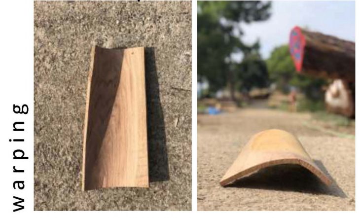 Soon after processing, the fresh wood shingles warped rapidly and the morphology curved to such an extent that the resulting pieces were no longer applicable to be used in the envelope system.