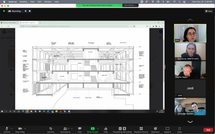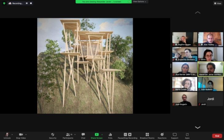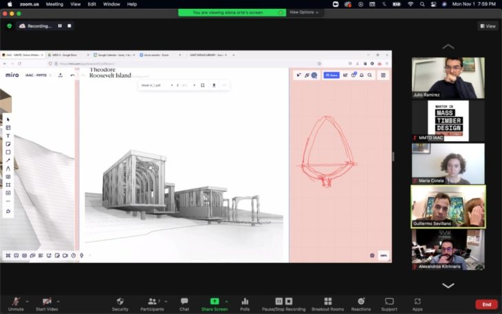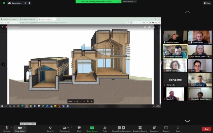 The Master in Mass Timber Design (MMTD), the new online master program from IAAC Valldaura Labs, held its first final review over zoom just before the winter break. This module was focused on the research and practice of mass timber design at a small scale. From a singular house to a series of installations and pavilions, students were introduced to the basic topics of structure, thermal performance, assembly processes, digital manufacturing and robotics in mass timber design. By harnessing the lessons and experiences of their professors, these students created immersive and extensively detailed proposals for their own single housing proposals using mass timber. With the help of studio professors Elena Orte and Guillermo Sevillano of Suma Arquitectura, this year’s MMTD students created an excellent series of typological explorations investigating what the future of wood materiality in architecture looks like.