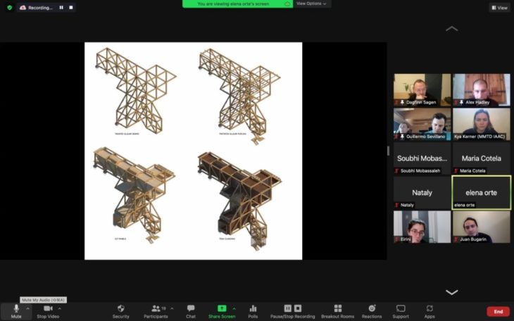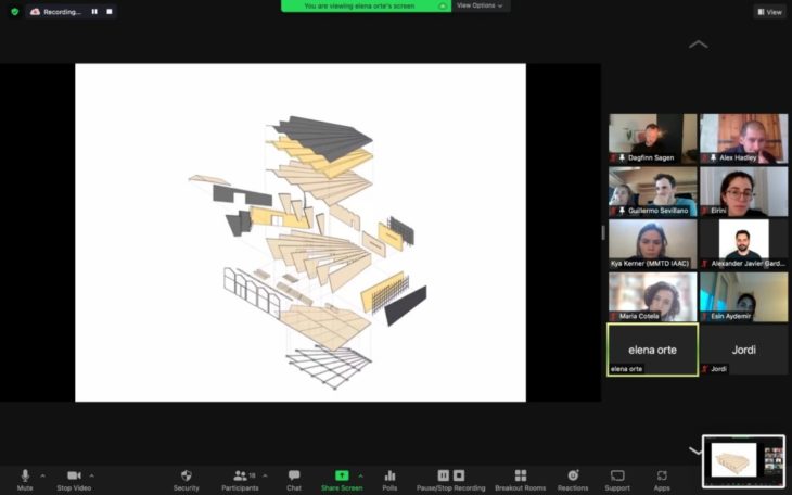 The Master in Mass Timber Design (MMTD), the new online master program from IAAC Valldaura Labs, held its first final review over zoom just before the winter break. This module was focused on the research and practice of mass timber design at a small scale. From a singular house to a series of installations and pavilions, students were introduced to the basic topics of structure, thermal performance, assembly processes, digital manufacturing and robotics in mass timber design. By harnessing the lessons and experiences of their professors, these students created immersive and extensively detailed proposals for their own single housing proposals using mass timber. With the help of studio professors Elena Orte and Guillermo Sevillano of Suma Arquitectura, this year’s MMTD students created an excellent series of typological explorations investigating what the future of wood materiality in architecture looks like.