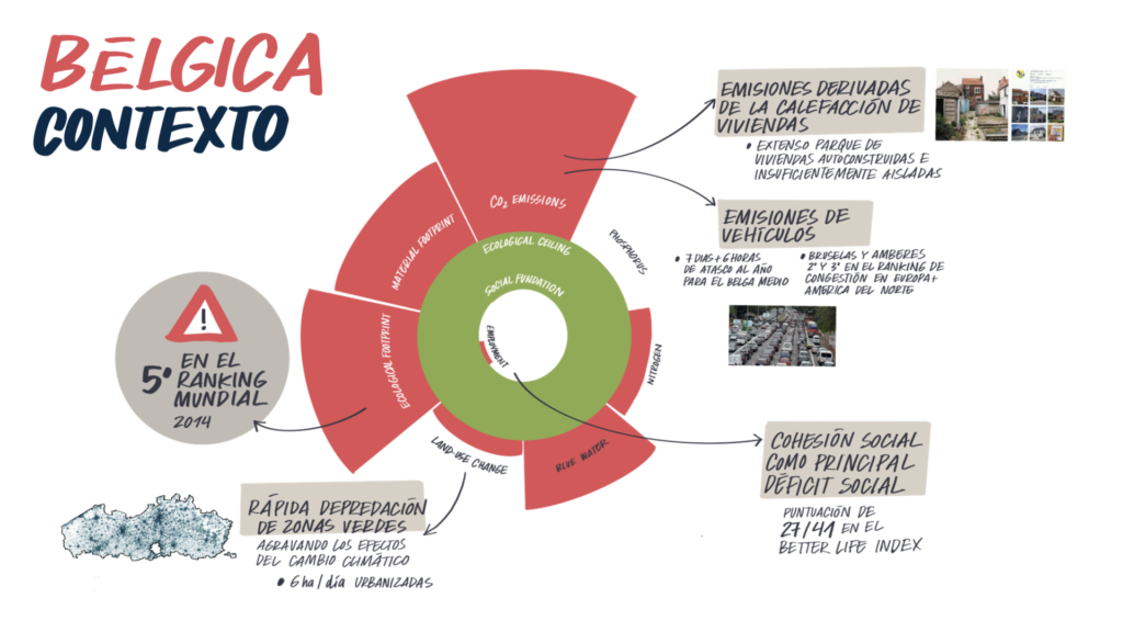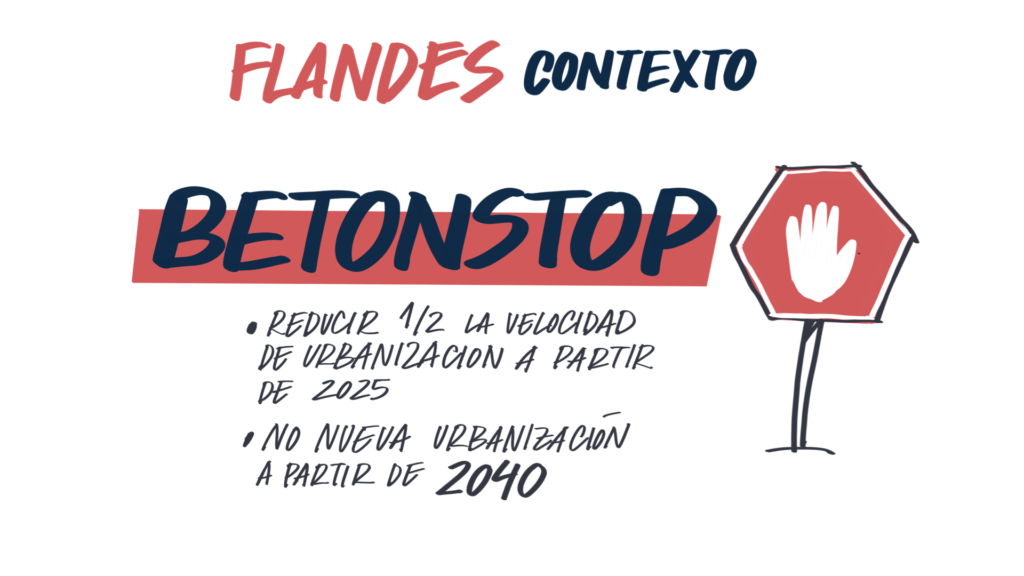 El trasfondo del proyecto es la decisión política de parar toda nueva urbanización en la región de Flandes a partir del año 2040 para mejorar su resiliencia frente al cambio climático. El objetivo es atajar los problemas de medioambientales que ha causado la rápida urbanización de las últimas décadas: perdida de ecosistemas, ineficiencia del transporte público y el consumo de energía, exceso de tráfico, vulnerabilidad frente a las inundaciones… por mencionar algunos.