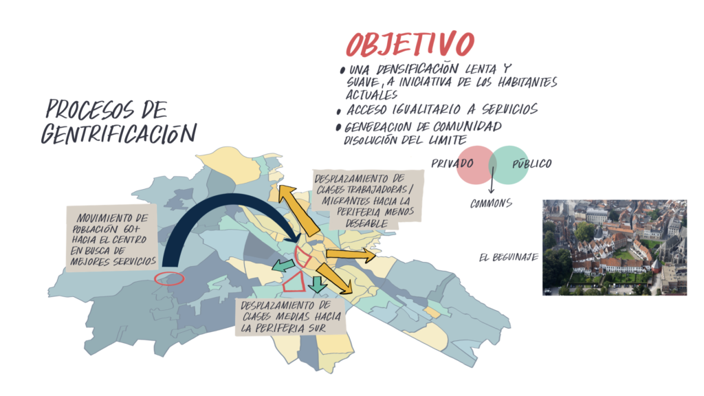 Promover un proceso de densificación lenta y bottom up, un acceso igualitario a los servicios públicos y la generación de comunidad a través de la creación de espacios que disuelvan los límites entre lo público y lo privado.