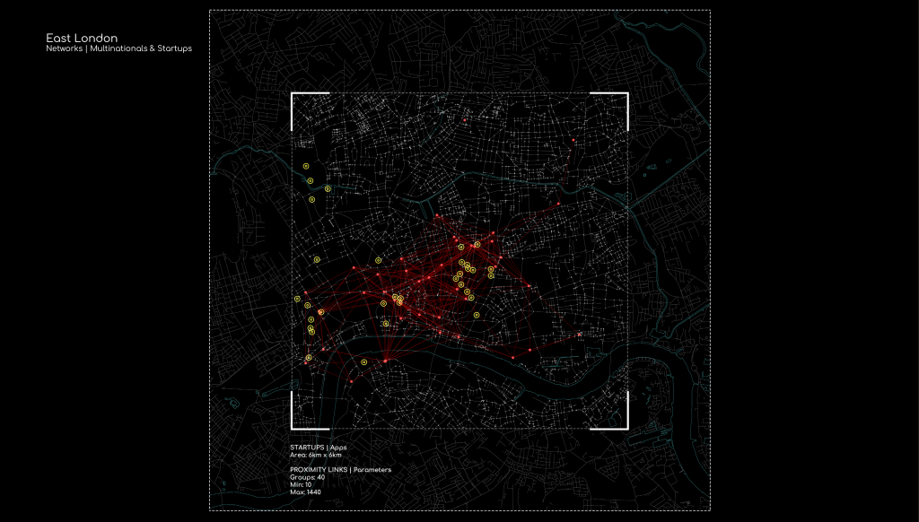 The startup landscape shows a strong relationship with the multinational centers. However, there is an expansion trend in and beyond the edges of this technological district.