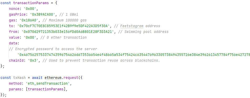 At the end of the auction Feetstagram had the higher bid and won the auction. The server boiler receives the payment of the bid and it sends a (0 ether) transaction to the Feetstagram application with the crypted server access password.