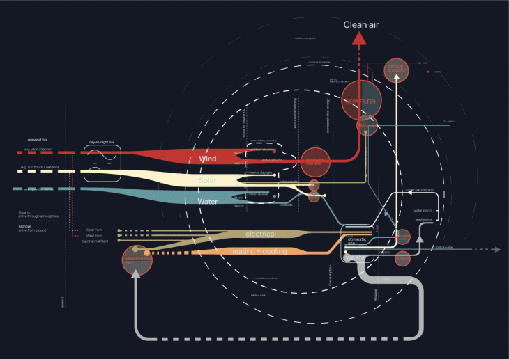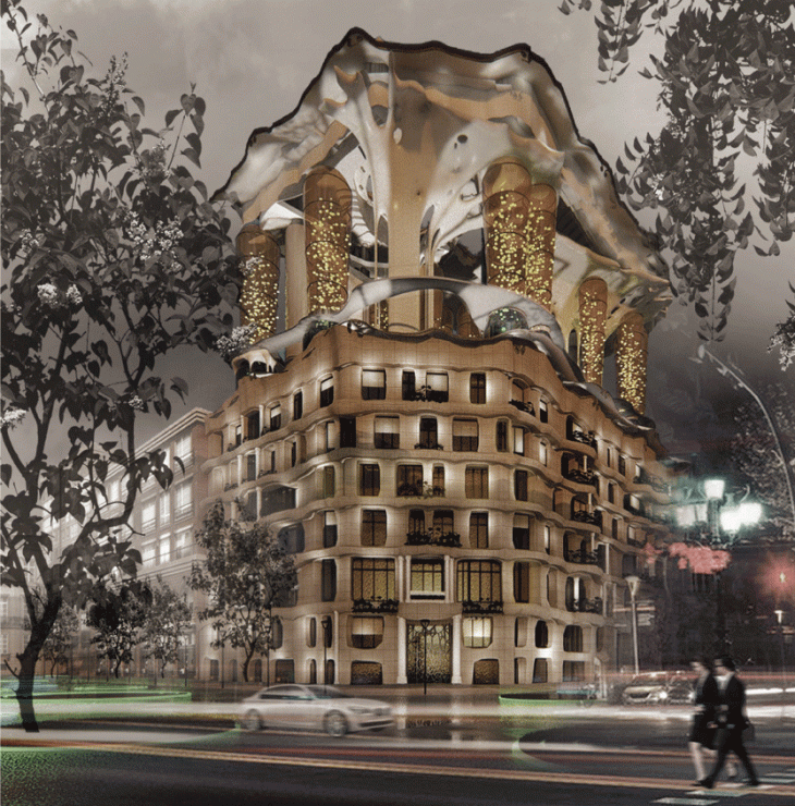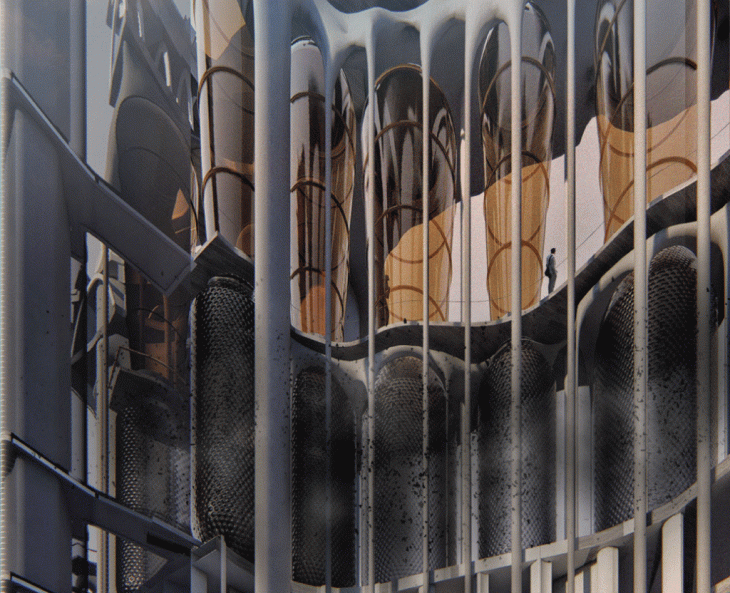 The Smog Cathedral project is an investigation ecologically driven technologies in construction, environmental preservation and material science culminating in the conception of a metabolic architectural intervention on Gaudi’s casa Mila.Sited in the central region of Barcelona and on a structure of great historical and architectural significance, the Casa Mila is transformed into an air remediation and conditioning structure. By drawing on opportunities presented by the unique site, namely its natural passive remediation strategies and abundant footfall, the intervention becomes as much environmentally performative in giving back clean air to the city as it is a beacon for awareness of the state of our ecological landscape.