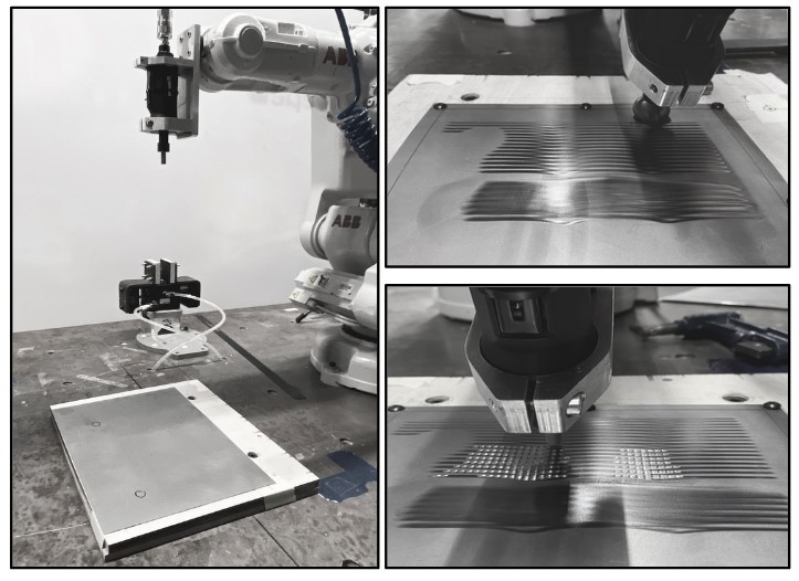 The end-effector was put into test on flat surfaces first. Through this testing, we built an understanding of the bits, constructed a simple library of texture-variations that resulted from the different speeds and angles.