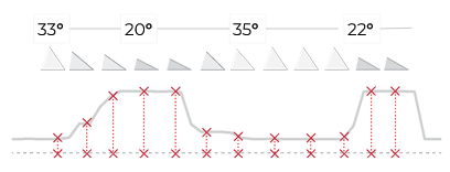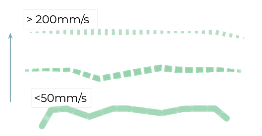 The stroke thickness is defined by the tilt.. We intended higher waves to have thicker strokes (thus, closer to 20°).