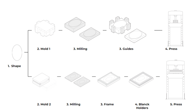 We have two different molds, the first one was made with a high performance polyurethane and the second one was made with wood and MDF.