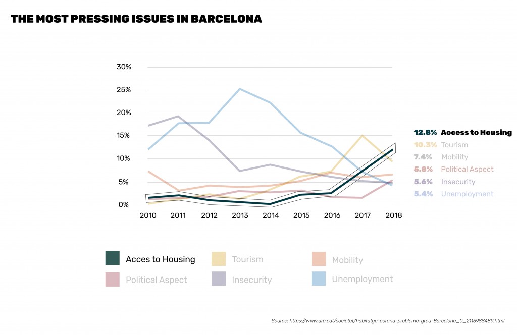 Among all those risk factors of Barcelona city. We took the example of housing in Barcelona as access to housing was the most pressing issue in Barcelona in 2018 over tourism and political aspects.