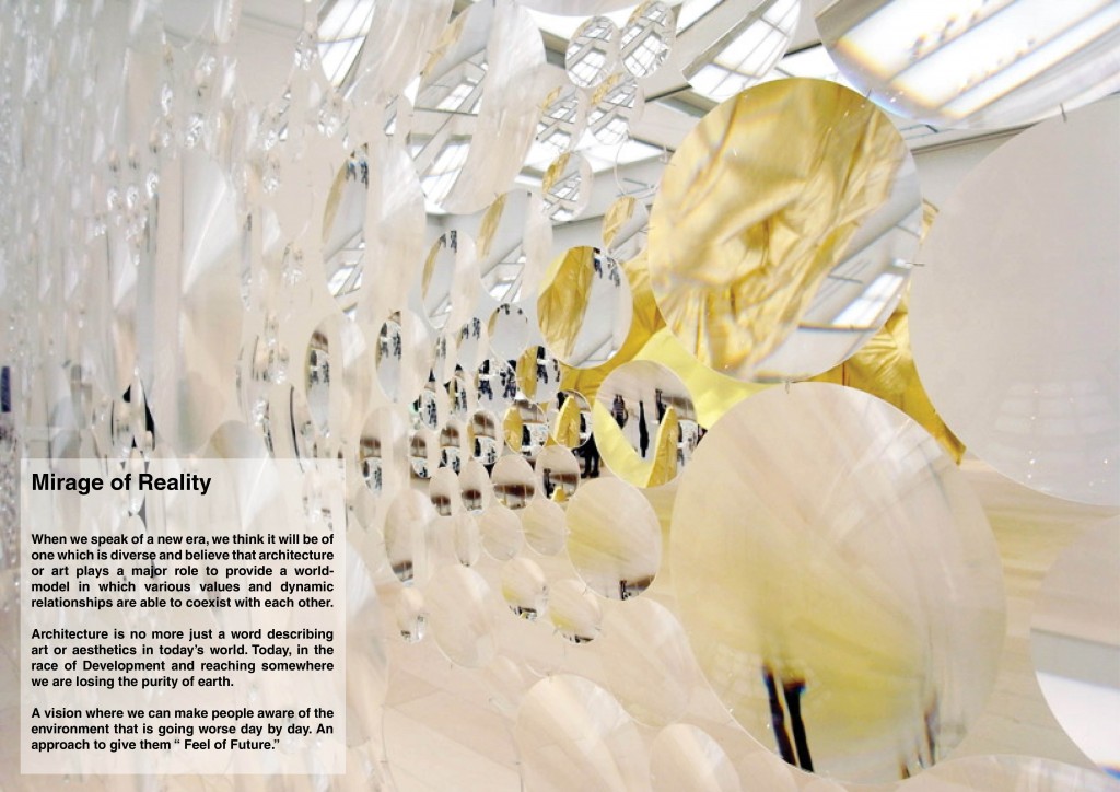 Human’s have been trying develop day by day and in this race of developing faster and better they forget about concerning the nature. Thinking – we can’t be making much worse than it already is! This thought has lead us to a state where even an idea of regenarating the environment is fading away in the smog! So Mirrolexia is a project developed to make humans realise, what has been done and to make them feel is the target of the project. A application which doesnot create a significal importance on the surrounding but it is purely targeted towards the experience of disappearing mass. The Result of this Research has lead to generation of a design which creates a distorted image of the surroundings making people disconnecting them from the surrounding chaotic environment.