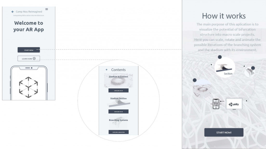 Bifurcate is an application that will allow you to visualize/modify/ and recreate spaces with a different structural system, bifurcation. In this phase of the application, we are visualizing different scale of the structure on its original environment. Moreover, modifying and re-creating this system can be done with Hololens which will allow users to have a better understanding of the network created by this kind of structures and how they can affect urban context.
