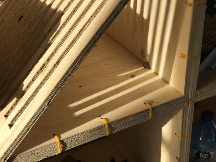 For this purpose, 15mm pine plywood was cut using the CNC machine to produce boxes and triangles using the technique of finger joints avoiding screws. Each geometry has six holes in each face, allowing the connection to the others by the use of zip ties which can be replaced when the need to create a different piece furniture arises. Eventually, a new material could be introduced so as to add different textures to the design.