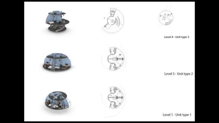 The visitor living concept tries to answer the need for visitors to feel like astronauts. Unit typologies were created for the visitor’s building to accommodate different guesses, from single individuals to family groups.