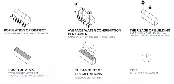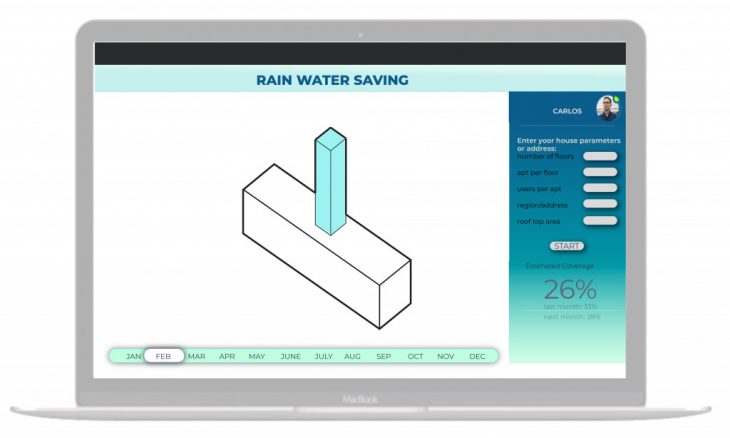 Using one specific area of La Barceloneta in Barcelona, A dynamic model was created that visualizes current consumption and simulates the collection of rainwater using an “umbrella” system that replaces part of this demand.