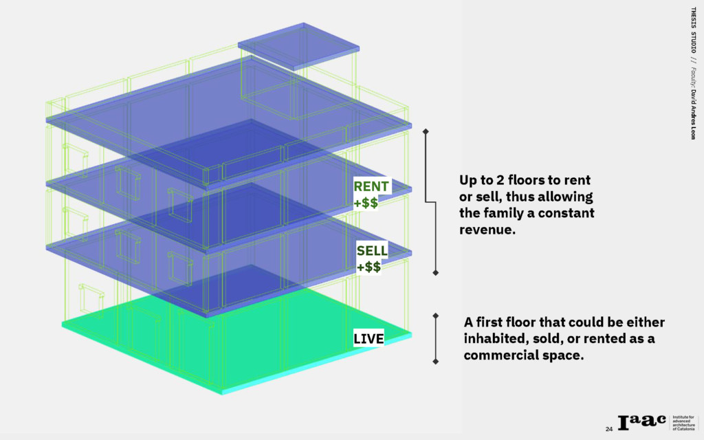 Socio-Economical factors are the driving force behind its evolutivity; Adding floorplates, dividing space, and opening floor-level stores are common during the lifetime of an MMH and are often assigned to social events such as the marriage of the son, the birth of a newborn, or even the death of the housekeeper; the father. The problem: The MMH is known to be the only type of architecture that is built “Without an Architect”.