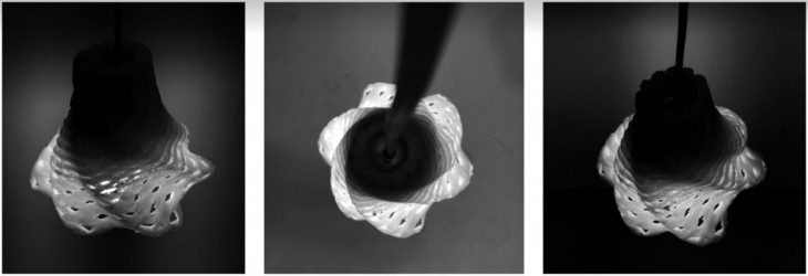 The design of the LIGHTREE was inspired on Valldaura’s nature, but more specifically on its trees. Observing the shape of the trees from the top, we began to draw the lamp’s base. After that, a structure was originated and developed from its base with the aim to provide the transparency of light combined with the movement and complexity of the trees, resulting in an interlaced perforated shape.
