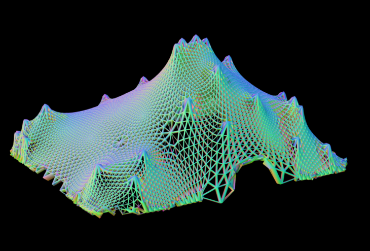 The concept was to create a pavilion that could change with different settings of length and strengths.
