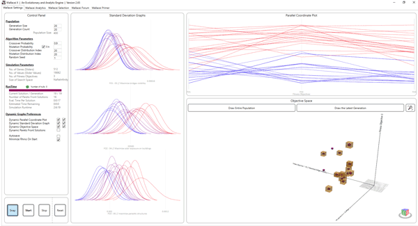 Wallacei was run a second time excluding the non-valid fitness criteria (generation size: 20 and generation count: 20).