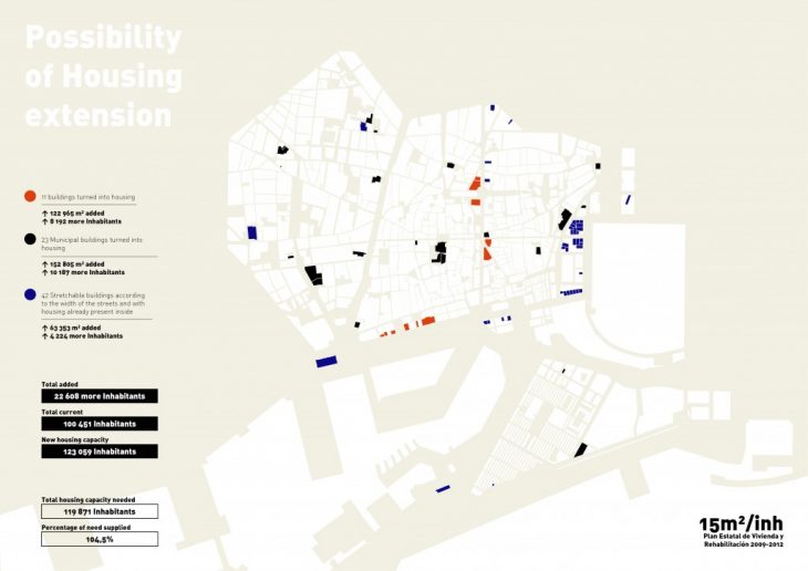 Secondly, our analysis underlined a lack of Social Housing. We proposed to transform the main administrative buildings and some office buildings into housing. Then, we densified some housing buildings by expanding them vertically were the morphology and the regulation allowed it. Doing so, an equilibrium between residence and productivity was obtained.
