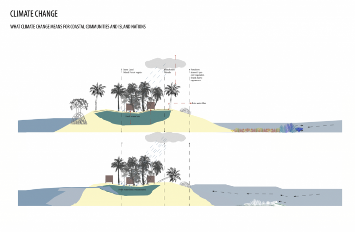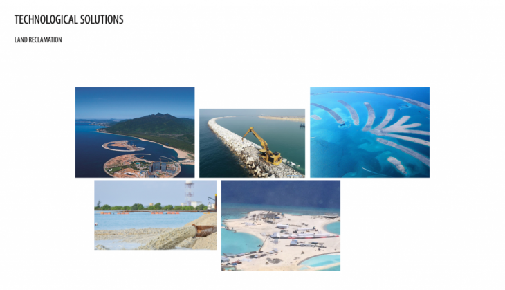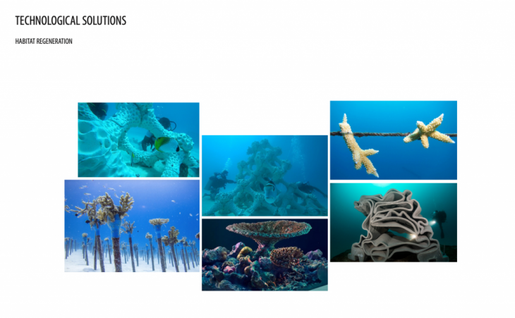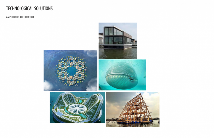 Coral reefs have demonstrated their ability to create new landscapes and adapt to past events of sea level rise by growing upwards on the fringe of a subsiding volcano, and overtime mature into barrier reef and then into atolls where coral islands form and mature enough eventually for human habitation. In the present day, due to the human activity driven climate change phenomena that we are experiencing coral reefs are at the risk of disappearance, while these coral reefs amount to less than 1% of the ocean itself, extinction of coral reefs will have drastic impacts on many communities , especially to that of coastal and islands. Island nations such as Kiribati, Tuvalu, The Maldives and the Republic of Marshall Islands which are made exclusively of coral atolls, risks being wiped out of the earth’s surface entirely within the century. Although technological advances are what has brought us to the era of the Anthropocene, this paper seeks to understand if more technology just maybe what is needed to resolve if not revert the consequences of human actions that are causing for the current ecological collapse. Humans have been adapting to rising sea levels for many years in different contexts by means of land reclamation, usage of dikes, pumps , sea walls to either protect settlements from coastal erosion and flooding. we are beginning to rethink these traditional strategies as rising temperatures could bring too much water for even dikes and pumps to keep back, this new thinking speculates on idea of amphibious architectures such as floating technologies that provides more sustainable options and opportunity to maintain a healthy life below water as much as on newly created land.
