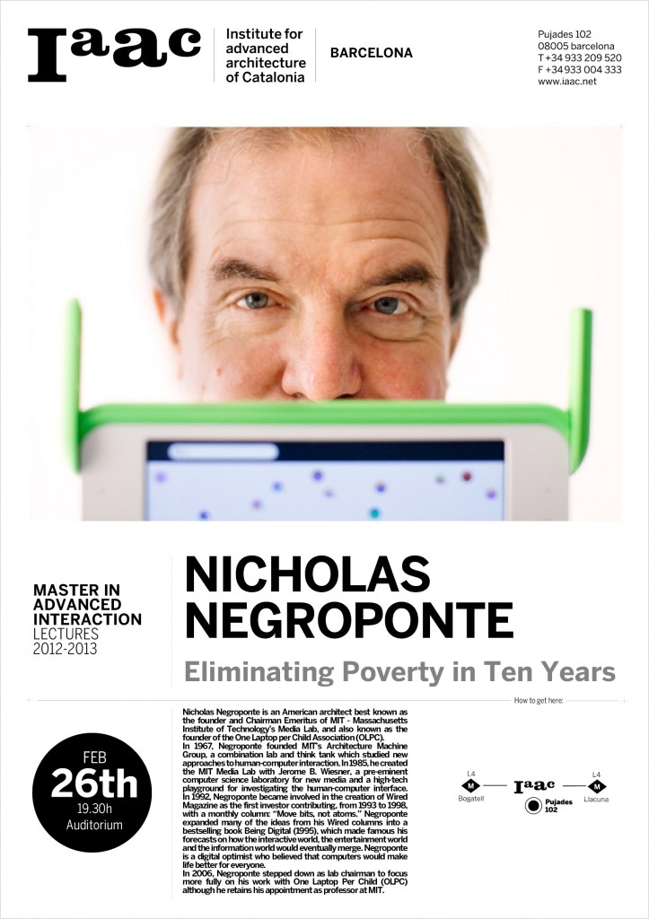 Nicholas Negroponte (born December 1, 1943) is an American architect best known as the founder and Chairman Emeritus of Massachusetts Institute of Technology’s Media Lab, and also known as the founder of the One Laptop per Child Association (OLPC). In 1967, Negroponte founded MIT’s Architecture Machine Group, a combination lab and think tank which studied new approaches to human-computer interaction. In 1985, Negroponte created the MIT Media Lab with Jerome B. Wiesner. As director, he developed the lab into the pre-eminent computer science laboratory for new media and a high-tech playground for investigating the human-computer interface. In 1992, Negroponte became involved in the creation of Wired Magazine as the first investor. From 1993 to 1998, he contributed a monthly column to the magazine in which he reiterated a basic theme: “Move bits, not atoms.” Negroponte expanded many of the ideas from his Wired columns into a bestselling book Being Digital (1995),which made famous his forecasts on how the interactive world, the entertainment world and the information world would eventually merge. Being Digital was a bestseller and was translated into some twenty languages. Negroponte is a digital optimist who believed that computers would make life better for everyone.