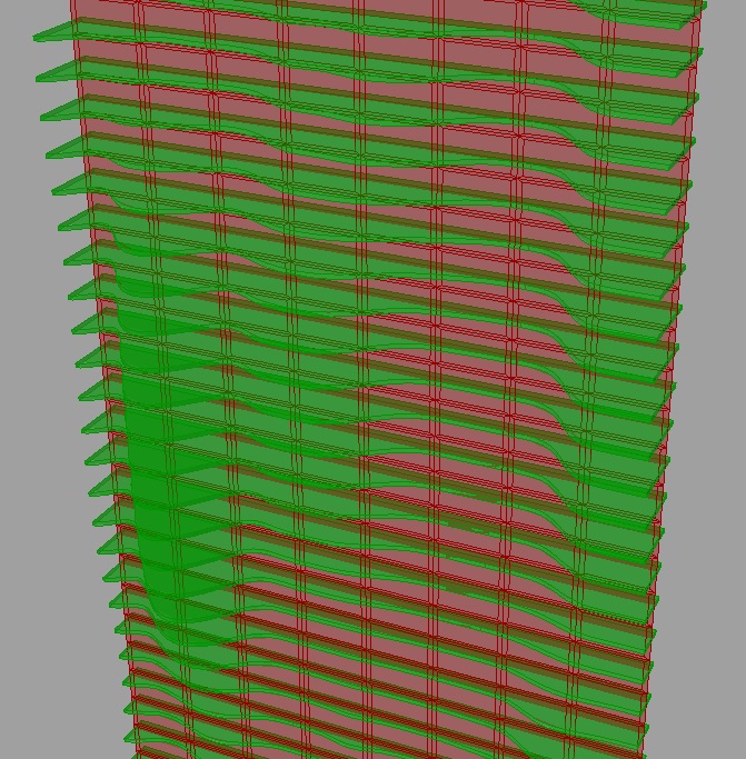 • Join contour with surface on a distance of 2.5 (per floor height) m, then project the contour in X-Z plane to the value of 1.