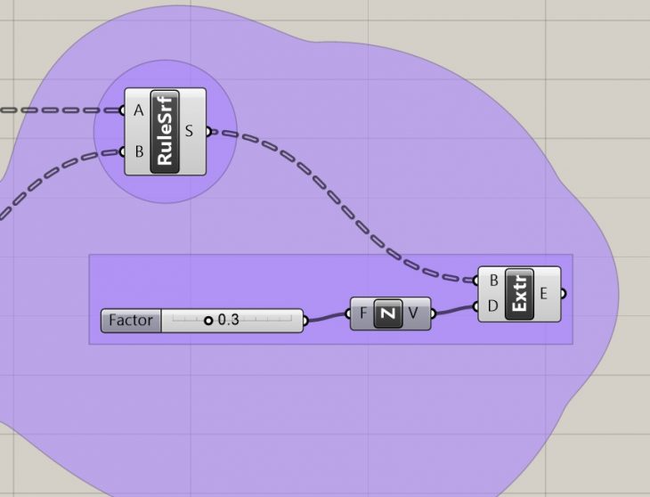 • Using ruled surface, rule the projected contour and Extrude them in Unit Z to the factor of 0.3, this is create a solid contour ruled surface.