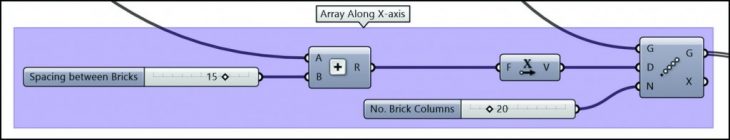 Furthermore, by changing the parameters listed below, the facade can scale up to cover a larger area, and the brick size could match the availability of the brick: