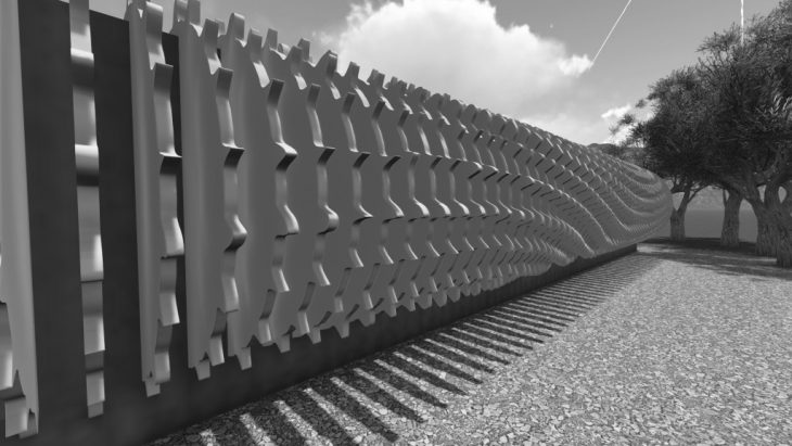 To be honest I didn’t know what to expect when doing test # 3 but at the end it works fine. Its nothing like the factory façade but the logic behind it is the same, to have a series of panels and create noise trough the XZ plane of the panels.