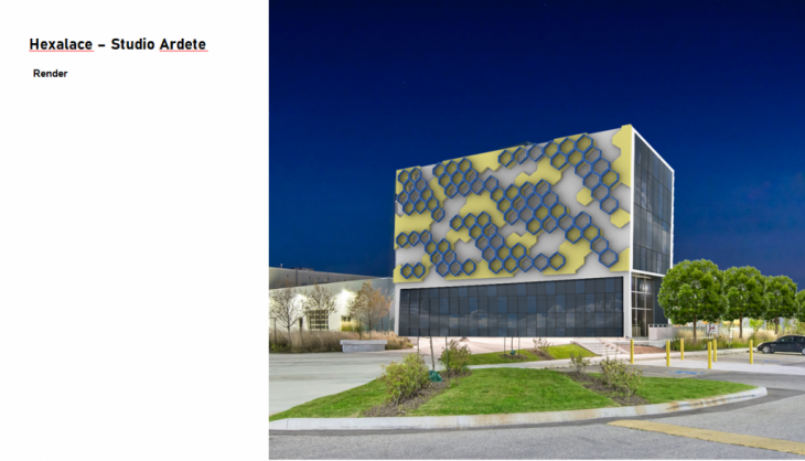Hexalace is an open-plan commercial building made primarily for leasing purposes. In a tight commercial plot with challenging building norms, it became perceptible from the beginning that the concept would have to be manifested from the façade. Considering the arduous climatic conditions involving extreme heat, and the building front facing west, the façade emerged as a buffer of stratifying elements. 3 inches thick concrete layer with hexagonal interstices has been used as a shading element.