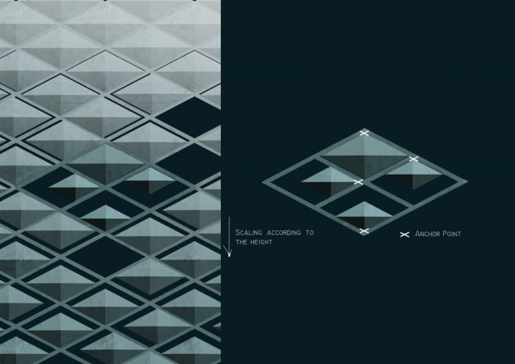 The aim of the assignment was to develop a digital script based on algorithmic design logics using McNeel’s Rhinoceros v6 and Grasshopper3d. As a reference project, I used an existing facade Maison Van Cleef & Arpels, and replicated it applying newly gained, but not yet mastered, computational skills.