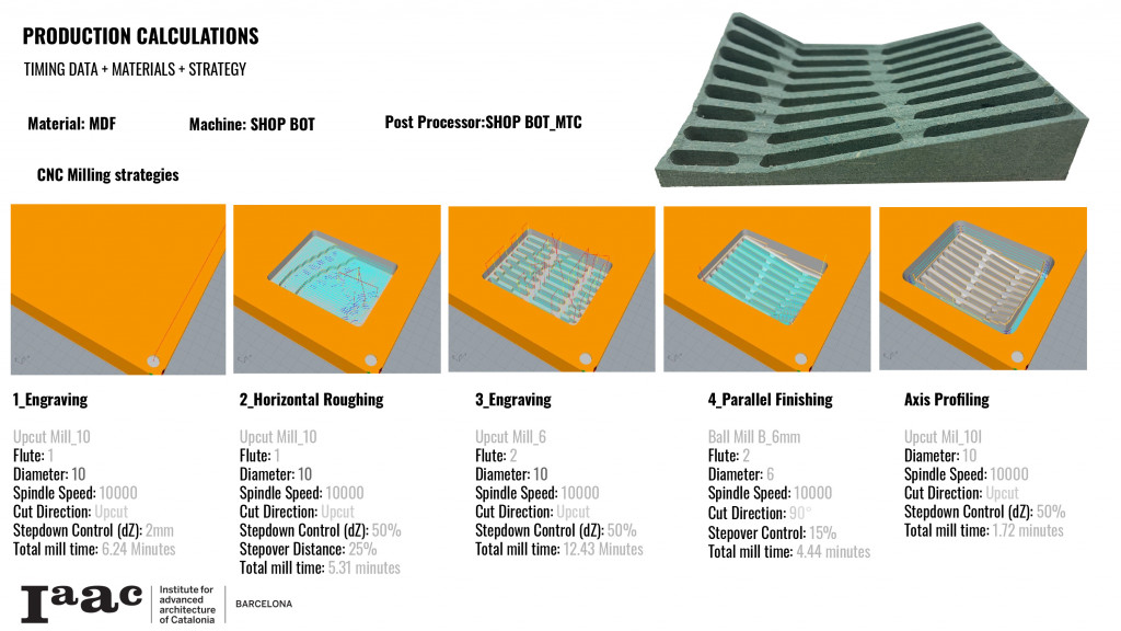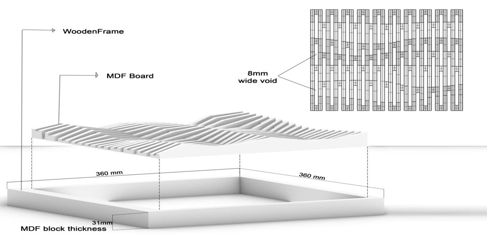 The fabrication process for the bigger prototype took approximately 1 hour and 25 minutes. The prototype was removed from the frame with the help of Axis profiling that made it easy to separate the prototype from the MDF board. Also, the wavy facade prototype was later mounted on a plywood base of 31 cm.
