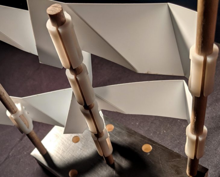 The project aimed at fabricating the facade of Emerson College, Morphosis Architect by understanding the material properties and fabrication strategies. The goal was to fabricate the supporting joints of folded panel solar screen by 3D Printing.