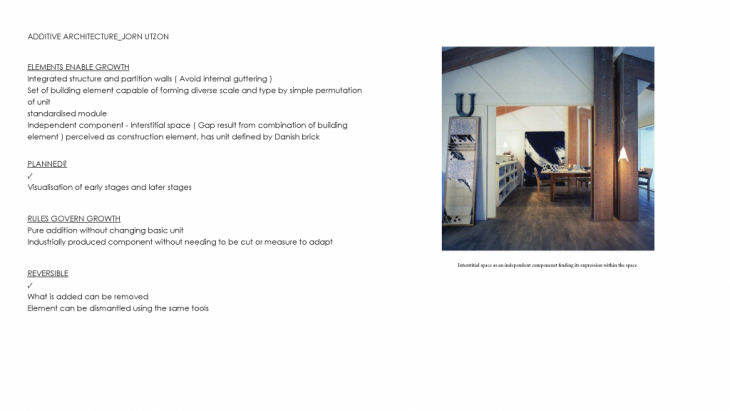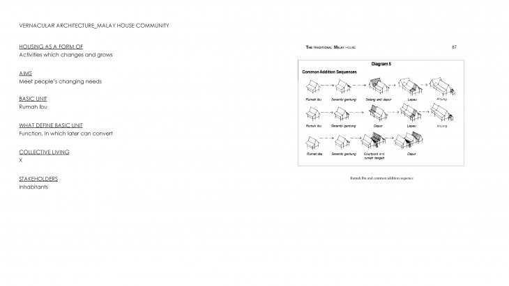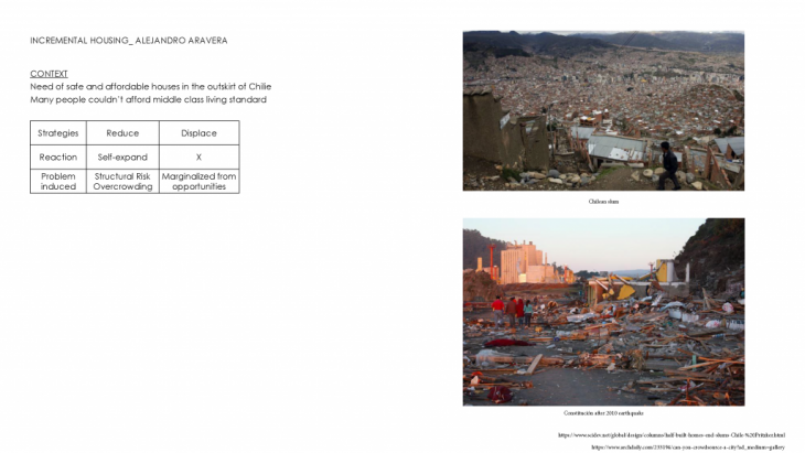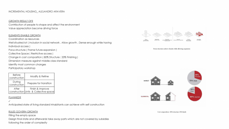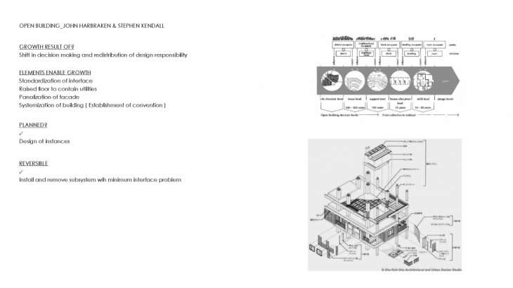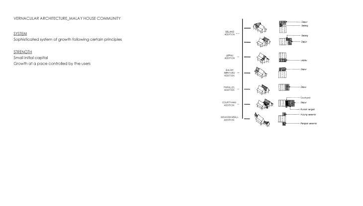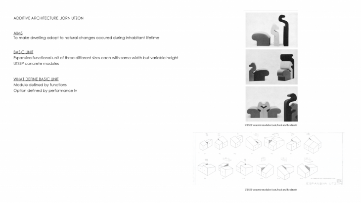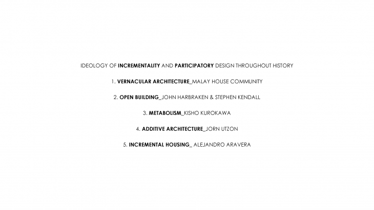 Regardless of not yet being recognized as terminologies people commonly used, the incremental and participatory concept have been practiced in vernacular architecture. Malay house is a typology that indigenous people of Malay Peninsula commonly lived in before the influence of modern movement reached that region. Since the country has undergone higher degrees of industrialization, Malay houses are gradually being replaced by more durable construction and more importantly, the traditional skills of constructing Malay houses, which is found in the still existing documentation to be more incremental than the industrially produced housing (Khor & Lim, 2001), has struggled to survive. As the modern movement completely transformed the building landscape and the uniformity of architecture, in particular, housing has raised widespread criticism, Dutch architect and theorist John Habraken has proposed the concept of Open Building. The principle is initially contextualized into the Netherlands due to the phenomenon that the majority of the houses people lived in are acquired by rent. This causes housing stock eligible for unit-by-unit renovation (Kendall, 2002). The principle of Open Building gave rise to a building system that is compatible to tenants moving in and out and constantly needing to renovate a certain part of the apartment at different instances. Later this concept is found scalable to many other contexts for producing a more habitable environment. On the other end of the world, while Japanese architects are intensively searching for ways to promptly reshape cities destroyed during WWII, the idea of Metabolism has gained its exposure through the Tokyo World Design Conference. Followed by a series of physicalization and theoretical debate in both the urban and architectural level called the Metabolic Movement, it is clear that the manifesto by the Metabolism group is deeply characterized by Japanese culture of urban mobility, unification of classes and the ephemeral nature that materiality has suggest them (Kurokawa, 1977). This also led to the separation from the Modernist stream of some Japanese architects originally well-known for practicing Modernism in their works. Not long later Danish Architect jorn Utzon, who has also visited Japan and influenced by the oriental architectural style has summarized his works with a term called Additive Architecture. Utzon’s observation in oriental architecture has inspired him to reflect upon structure of elements in nature and concluded that richness can be created by arrangement of numerous identical units. Motivated by the variation that the additive approach could possibly give, the architect continued to pursue the design of changeable housing to cope with natural changes that lives encounter (Utzon, 2009). It is worth highlighting that changes being discussed in this study, in other words, extreme climatic conditions, does not belong to the category of natural changes and it suggests that the aforementioned principles may not be completely valid in terms of meeting the needs brought by such acute changes. Contextually speaking, the last existing theory that is being discussed here is developed under a more similar condition which is the provision of safe and affordable housing to slums and regions hit by earthquakes. Incremental housing is a more recent concept comparative to the previously discussed concepts and yet it inherits many fundamental principles of the three. Incremental housing concept is challenging the existing framework to cope with the problem that a large part of the community does not have sufficient resources to afford a basic living standard. The term incrementality is also borrowed from incremental housing because of the similarity in their core belief. Nevertheless, the difference between the incrementality being proposed in this argument and Alejandro Aravera’s original idea will be discussed in the later sections.