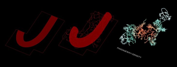 Iteration, created for a passageway. The partitions have a low level of transparency and high density.