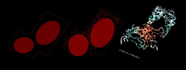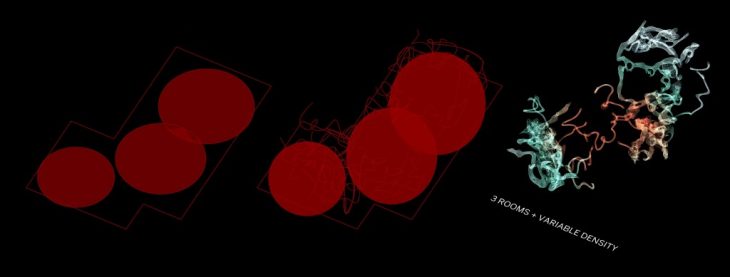 Party-tions project is an attempt to develop a system of smart partitions, that can adapt to the desired parameters of space and fill the interior accordingly.