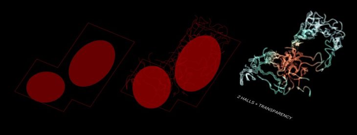 Iteration, created for 2 large halls. The partitions have a medium level of transparency.