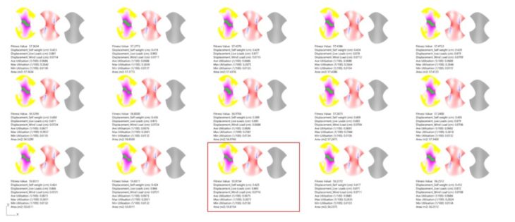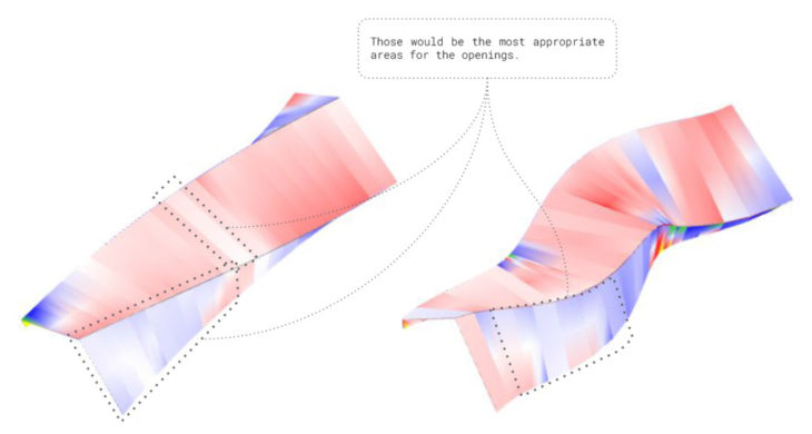 2 – The second one works with the bridge geometry and searches for the best shell structure to span along the canal following a geometrical optimisation process.